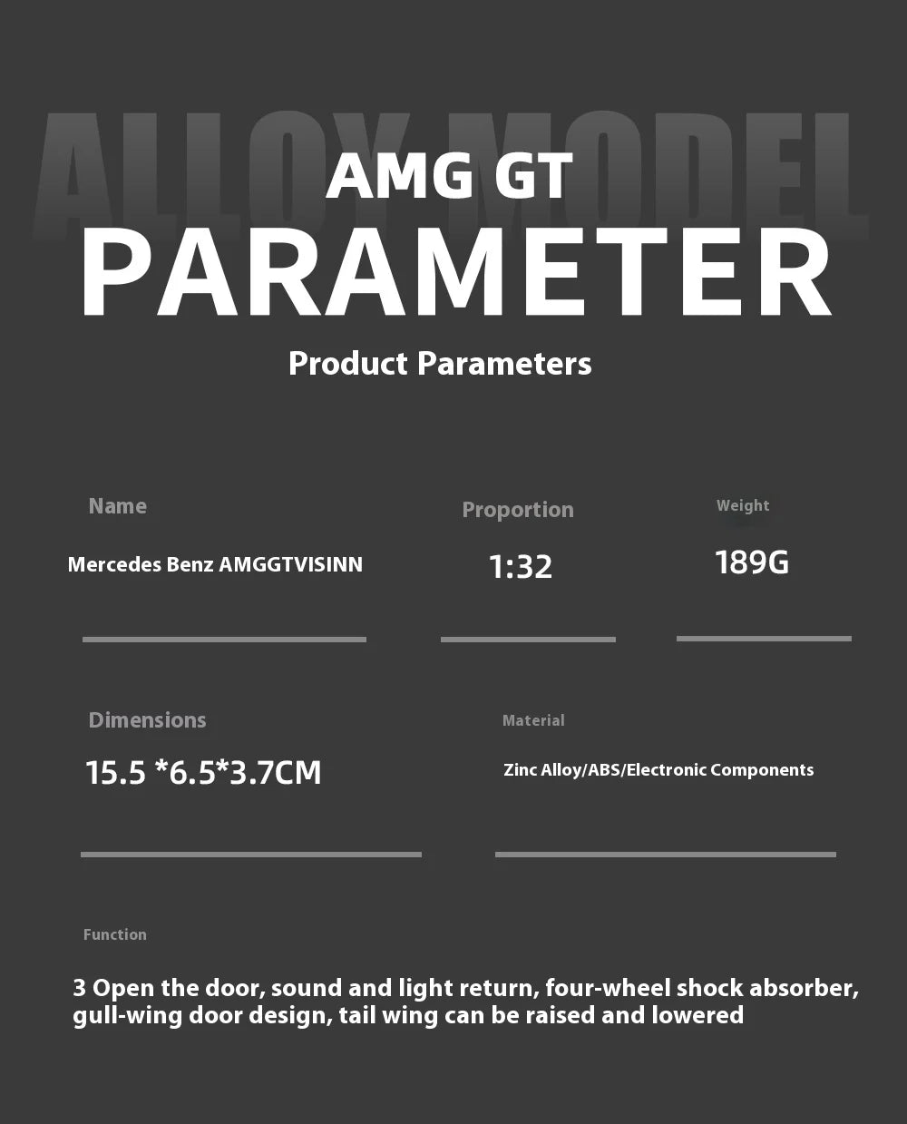 Stunning replica of the Mercedes-AMG Vision Gran Turismo concept supercar. Premium die-cast metal construction captures the futuristic design in stunning detail. Working lights and engine sounds enhance the presentation. Opening features reveal intricate interior work. 1:32 scale. Ideal for collectors of concept vehicles and Mercedes-AMG enthusiasts.
